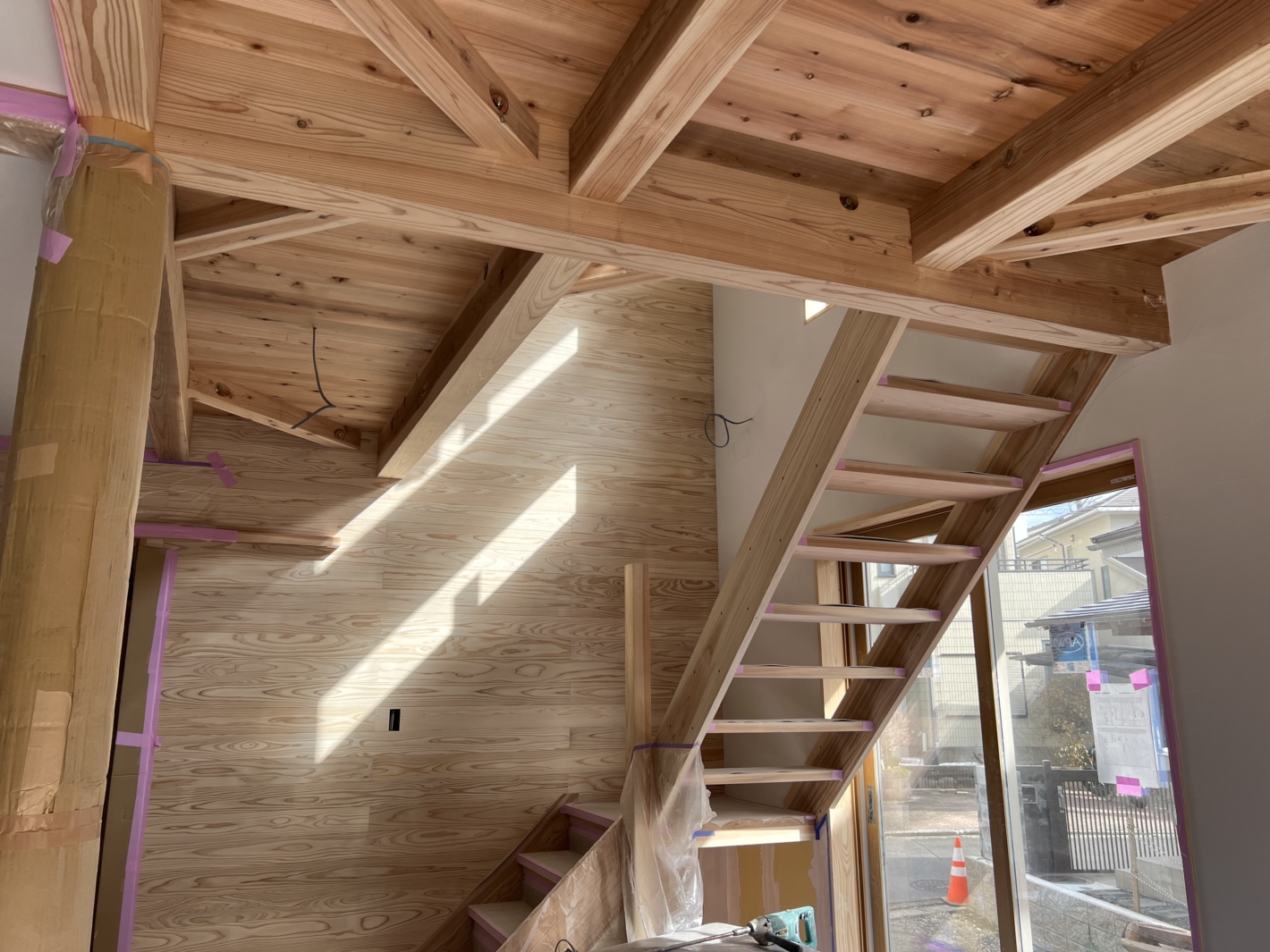 そんなご縁から生まれた今回のおうちは、建設地近くの愛川町の木を構造材に採用。地元の森で育った木を活かし、地域とのつながりを感じられる住まいです。