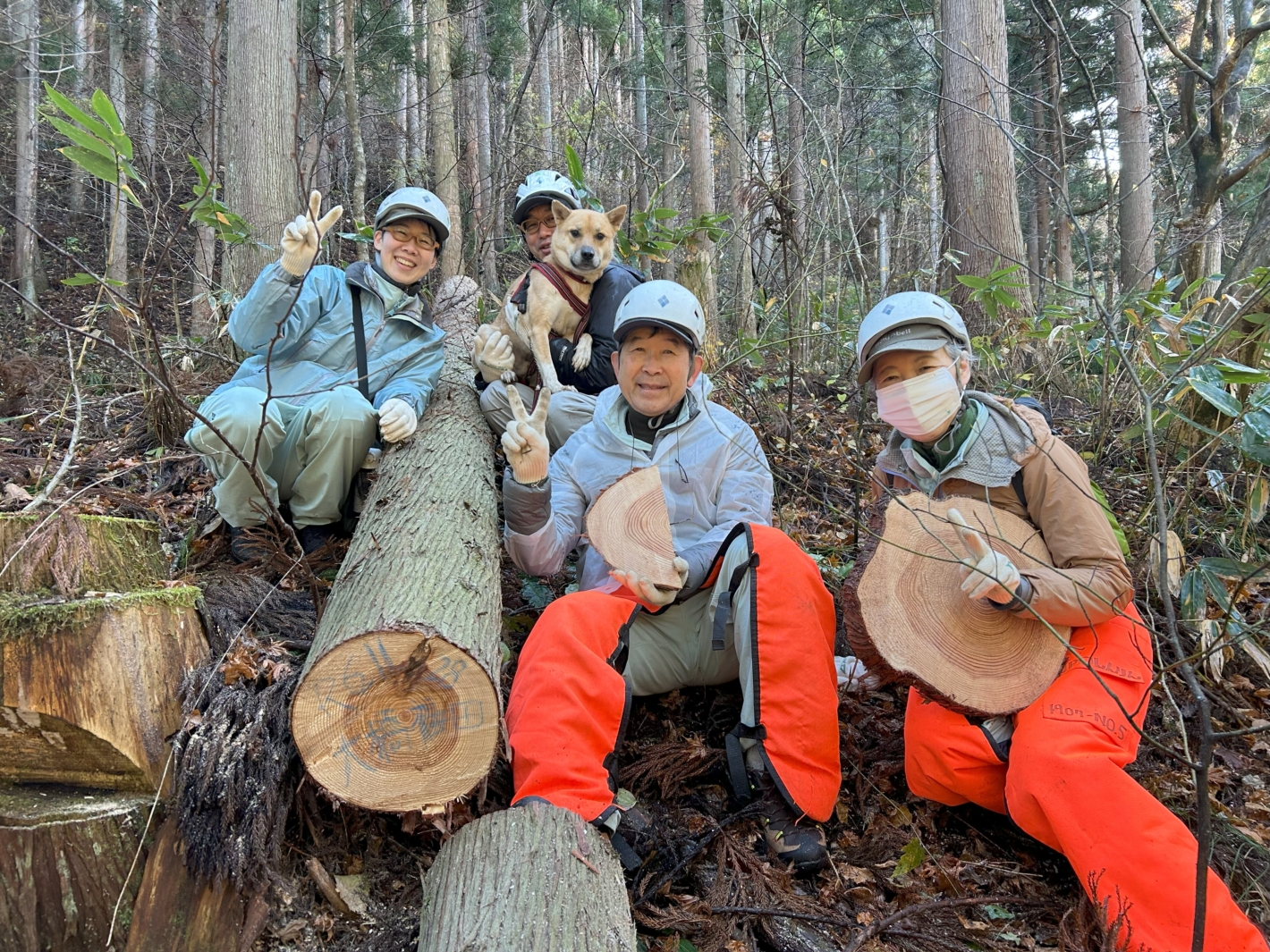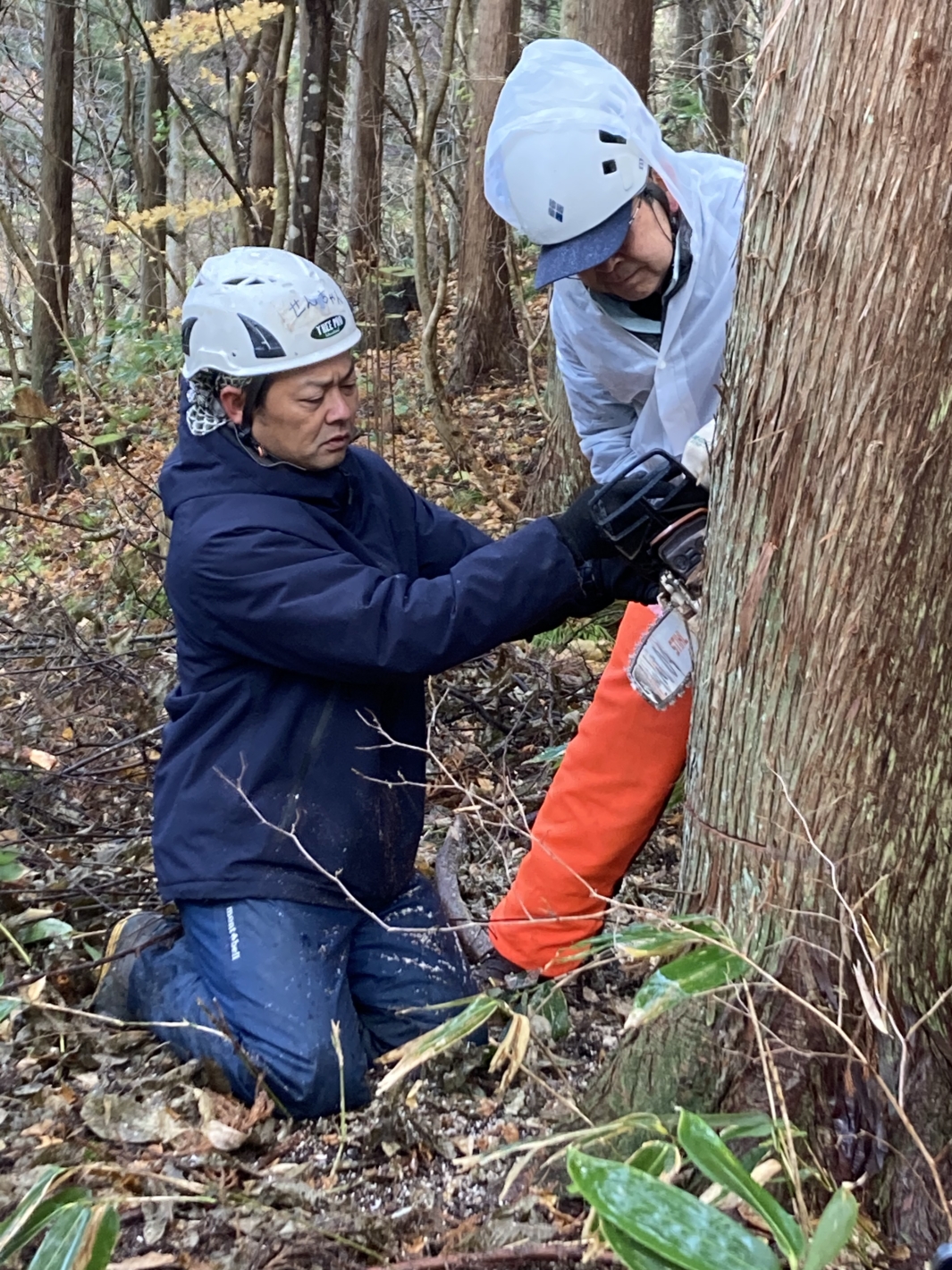 隣を見たら母も涙、父は最高の笑顔でした!ずーっと60年位ここに立って生きていた木が倒れる瞬間の、ズーン…という響きが“いのちの重みの音”という感じで、山の中に消えていったことに感動しました。