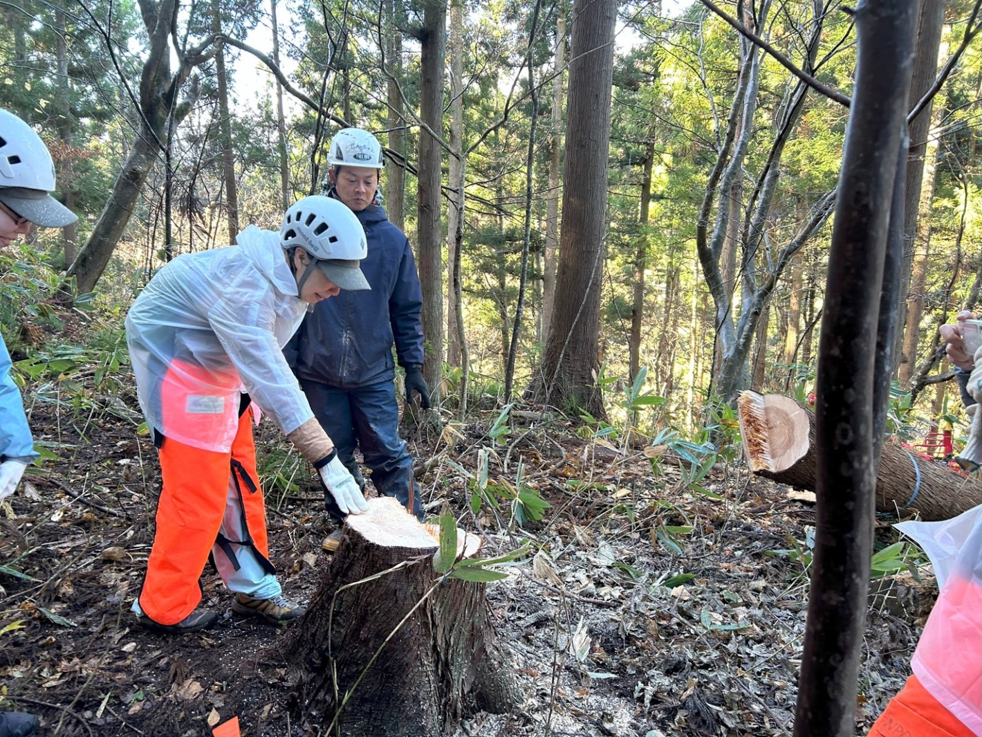 (伐採体験の様子は、こちらの建てるヒトコラムにてご紹介しています。)