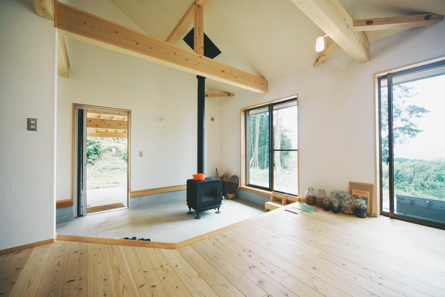 そのため、広々とした空間や大きな開口部が作りやすくなりますし、庭などとの連続性を取りやすく、安定感が出るのもいいところ。